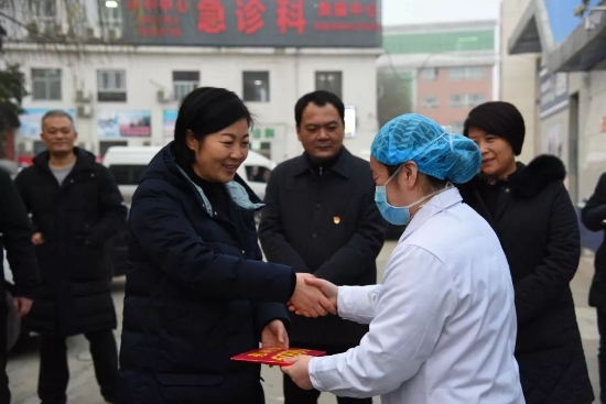 鄲城縣第一醫(yī)療健康服務(wù)集團作為河南省新型肺炎救治定點醫(yī)院時刻牽動著縣委縣政府領(lǐng)導(dǎo)的心。1月23日,縣委書記羅文閣、縣政府縣長李全林、縣政府副縣長肖煒來到縣醫(yī)院親切慰問一線醫(yī)護人員,并給一線工作人員帶去春節(jié)祝福。