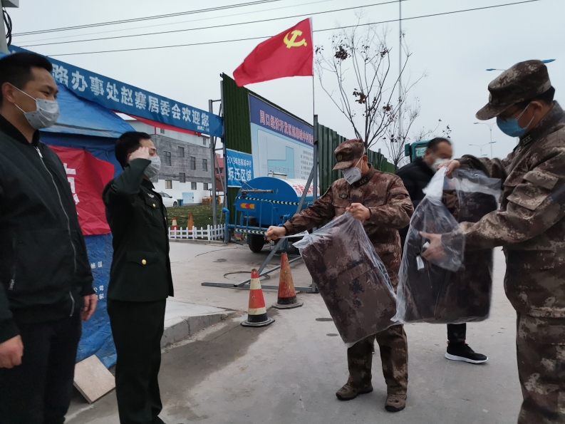 在淮河路辦事處趙寨居委會執(zhí)勤點(diǎn),探親在家兩名現(xiàn)役戰(zhàn)士趙為為、趙繼周疫情發(fā)生后堅(jiān)持在防控一線執(zhí)勤點(diǎn)執(zhí)勤。當(dāng)晚6時(shí)許,天色漸黑,了解到這一情況后,部長和政委依然驅(qū)車趕到現(xiàn)場,詳細(xì)了解兩名戰(zhàn)士的服役情況,并給他倆每人送了一件軍用大衣,提醒注意自身安全,有啥需求第一時(shí)間和武裝部溝通聯(lián)系。