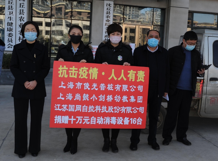2月18日,在沈丘縣疫情防控指揮部,上海市俊光管樁有限公司、江蘇國(guó)網(wǎng)自控科技股份公司、上海上懿小劍橋教育管理有限公司聯(lián)合捐贈(zèng)價(jià)值10萬(wàn)元的自動(dòng)消毒設(shè)備16套,沈丘縣洲業(yè)車業(yè)有限公司(洲業(yè)國(guó)際汽車城)捐贈(zèng)84消毒液(10升/桶)17桶、(5升/桶)166桶,沈丘縣華順農(nóng)業(yè)建設(shè)工程有限公司捐贈(zèng)75%酒精消毒液(非醫(yī)用)(2.5L/桶x6/件)168件、一次性使用醫(yī)用橡膠檢查手套(100副/盒)53盒,用于疫情防控工作??h委常委、縣政府黨組成員馬偉,縣政協(xié)副主席、縣工商聯(lián)主席張瑛,縣政府辦副主任韓向立出席捐贈(zèng)儀式。