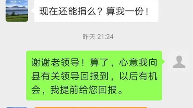 “我是一名退休多年的老民警、老黨員,疫情當(dāng)前,我決定捐贈(zèng)2000塊錢,用于最需要的地方,盡我的一點(diǎn)綿薄之力?!?月3日上午,西華縣公安局經(jīng)偵大隊(duì)退休民警、56年黨齡的老黨員白德林特意來到單位找到警令室主任侯洪洲捐款2000元,支援疫情防控。