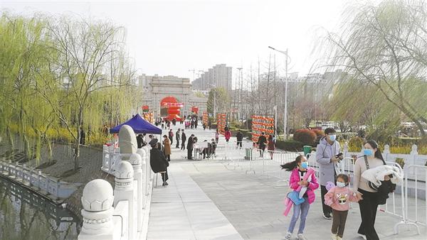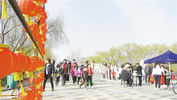 記者沿周口公園主干道向里走看到,路旁的花燈鮮艷奪目,如意湖邊楊柳依依,園內(nèi)迎春花開、玉蘭飄香,滿園春色如期而至。記者發(fā)現(xiàn),游客們?nèi)齼蓛傻?,主要以家庭為單位一起游玩,沒(méi)有出現(xiàn)扎堆現(xiàn)象。