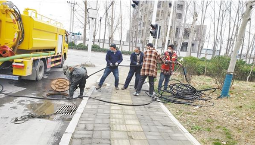 開發(fā)區(qū)公用事業(yè)管理中心按照精細化管理要求,組織市政設(shè)施維護人員定期對路網(wǎng)、行道樹進行巡查,及時更換雨污水井蓋及雨水箅,修剪行道樹。圖為3月9日,開發(fā)區(qū)公用事業(yè)管理中心對轄區(qū)朝陽路市政設(shè)施加緊維護,及時疏通排水管道,消除道路積水隱患。