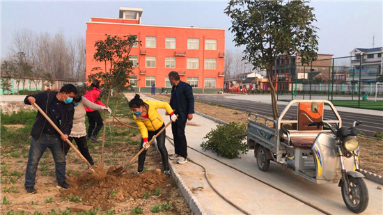 陽春三月,春風(fēng)吹綠了枝芽,吹綠了草地,櫻桃花、梨花爭相開放。植樹節(jié)前夕,西華縣蔣莊小學(xué)組織老師一邊戰(zhàn)疫情,一邊開展植樹造林活動,堅(jiān)持在疫情中為校園再添新綠。