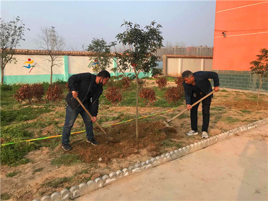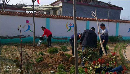 在學(xué)校老師的努力下,在蔣莊村干部群眾支持下,經(jīng)過10多天的辛勤勞動,蔣莊小學(xué)今年新栽植綠化樹、花木5000多棵(株),本來綠色盎然的校園又添新綠。