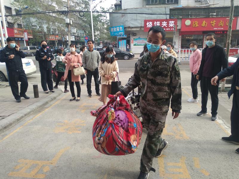 “同學(xué)們,請(qǐng)排好隊(duì),與前面的人保持1米以上的距離?!?月20日上午,在鄲城縣華宇中學(xué),來自洺南街道基干民兵應(yīng)急分隊(duì)的民兵們正在現(xiàn)場(chǎng)維護(hù)秩序,幫助該校做好九年級(jí)學(xué)生復(fù)學(xué)入校防疫工作。