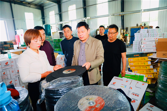 在盛威磨料磨具有限公司車間,陳鳳祥詳細(xì)了解公司的產(chǎn)業(yè)扶貧、就業(yè)扶貧、發(fā)展規(guī)模、疫情防控、復(fù)工復(fù)產(chǎn)和周邊環(huán)境整治等情況,對公司健康持續(xù)良性發(fā)展前景給予肯定,對韓偉在扶貧項目引進(jìn)的突出成績給予稱贊。同時,詳細(xì)詢問公司在生產(chǎn)過程中遇到的困難和急需解決的問題,并逐個研判解決。