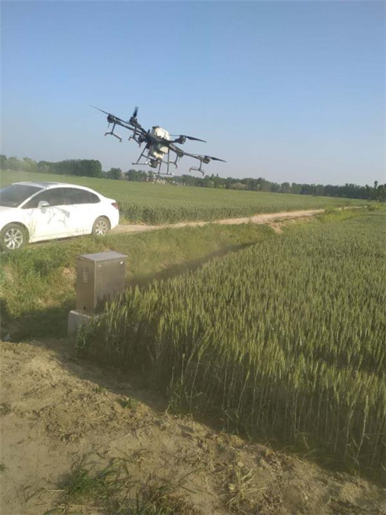 現在正值小麥孕穗抽穗期的關健時間節(jié)點,也是各種病蟲害的高發(fā)期,做好這一時期的田間管理工作對確保小麥的豐收至關重要。將殺蟲劑、殺菌劑、微肥、抗旱劑等混合加水噴霧能同時實現防治小麥病蟲害,預防干熱風,防治倒伏和增加千粒重的效果。利用無人機作業(yè),提高了工作效率,提升了用藥效果,降低了勞動成本。