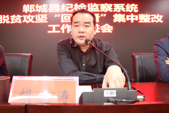 5月5日上午,鄲城縣紀委監(jiān)委召開全縣紀檢監(jiān)察系統(tǒng)脫貧攻堅“回頭看”集中整改工作推進會。縣委常委、縣紀委書記、監(jiān)委主任胡友濤出席會議。