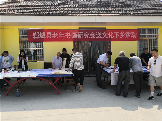 5月4日上午,鄲城縣汲水鄉(xiāng)押嶺行政村村室大院格外熱鬧,幾名書(shū)法家正被群眾團(tuán)團(tuán)圍住,原來(lái)是鄲城縣老年書(shū)畫(huà)研究會(huì)會(huì)長(zhǎng)曾慶祥帶領(lǐng)書(shū)畫(huà)名家來(lái)押嶺開(kāi)展送文化下鄉(xiāng)活動(dòng)。