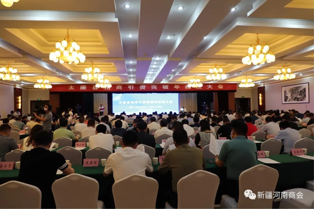 5月29日下午,太康縣艷陽高照,大地金黃。太康縣招商引資突破年促進(jìn)大會(huì)在宏泰酒店東三樓會(huì)議室隆重舉行。太康縣四大班子的領(lǐng)導(dǎo),各鄉(xiāng)鎮(zhèn)黨委書記、縣直單位主要負(fù)責(zé)人及太康籍商界知名人士代表、受邀客商共300余人參加會(huì)議。我會(huì)會(huì)長朱軍,執(zhí)行會(huì)長紀(jì)昌鋒,常務(wù)副會(huì)長李海迎、王培忠,辦公室主任徐汝靈參加了大會(huì)。