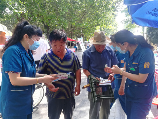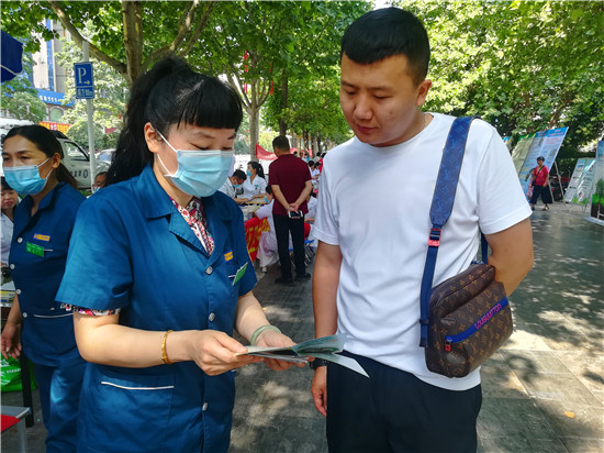 活動(dòng)現(xiàn)場,參加宣傳活動(dòng)的各單位工作人員為市民散發(fā)宣傳相關(guān)資料,并為市民進(jìn)行義診。