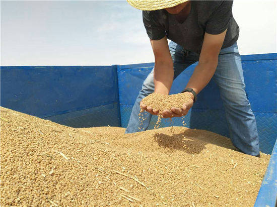 6月4日,商水縣高標(biāo)準(zhǔn)糧田示范區(qū)內(nèi),金燦燦的麥穗迎風(fēng)擺動(dòng),麥香四溢。種糧大戶邱守先站在自家承包的麥田邊,揉搓著收割機(jī)剛剛吐出的麥粒:“你瞅瞅,這小麥籽粒飽滿,品相多好!”然而,面對(duì)豐收景象,他卻連連說“后悔了......”。