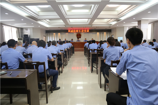 近日,項城市人民檢察院黨組書記、檢察長周威為全院干警講“強(qiáng)化四個意識,推進(jìn)機(jī)關(guān)黨建上水平”專題黨課。