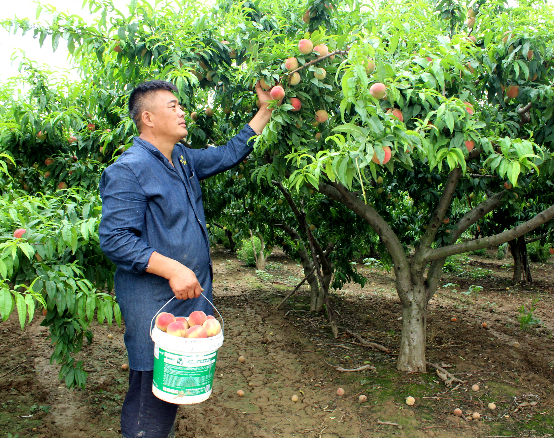潁河灣生態(tài)采摘園負(fù)責(zé)人叫和合盛,今年44歲,高中畢業(yè)后外出打工,2013年返鄉(xiāng)創(chuàng)業(yè),投資30余萬元,流轉(zhuǎn)土地140畝種植水蜜桃,創(chuàng)辦西華縣合盛種植專業(yè)合作社。目前,該合作社種植水蜜桃面積2000余畝,發(fā)展社員106戶,帶動(dòng)建檔立卡貧困戶112戶,其中產(chǎn)業(yè)扶貧100戶,金融扶貧12戶,被上級(jí)有關(guān)部門命名為市級(jí)扶貧示范基地。由于合作社種植的桃子質(zhì)量好、價(jià)格合理、銷售火爆,和合盛成了遠(yuǎn)近聞名的致富能手,被人親切地稱為“桃子哥”。
