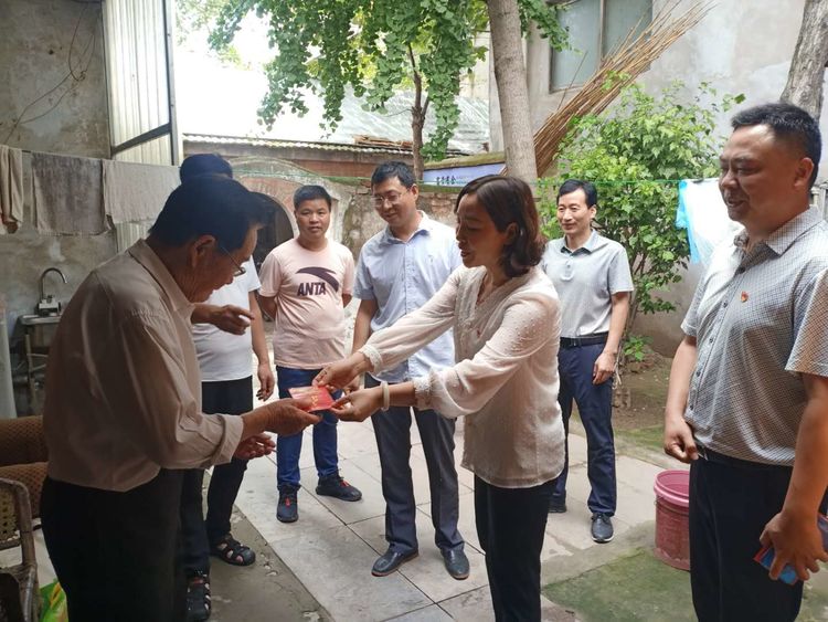 為迎接中國共產(chǎn)黨成立99周年,弘揚(yáng)黨的光榮傳統(tǒng)和優(yōu)良作風(fēng),充分體現(xiàn)黨組織對黨員的關(guān)心和愛護(hù)。6月29日,在“七一”建黨節(jié)來臨之際,鄲城縣洺南街道辦事處主任王彩玲帶著黨的關(guān)懷和溫暖,走訪慰問了洺南老黨員,為他們送去慰問金和米面油等生活物資并致以誠摯問候和美好祝福。