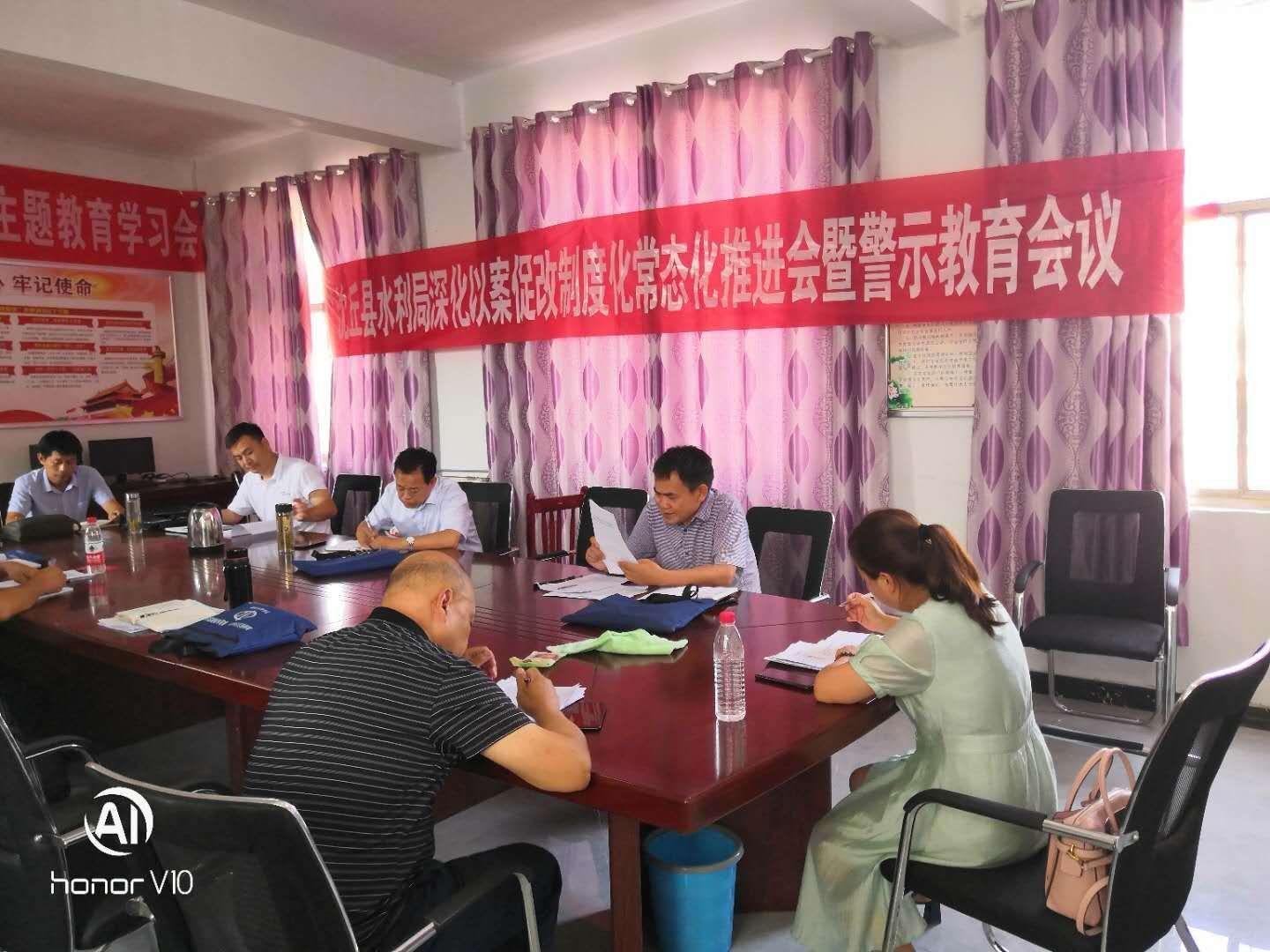 7月9日,沈丘縣水利局召開深化以案促改制度化常態(tài)化推進(jìn)會(huì)暨警示教育大會(huì)。會(huì)上,局黨組書記、局長張偉傳達(dá)了縣委深化以案促改制度化常態(tài)化推進(jìn)會(huì)暨警示教育會(huì)精神,宣讀了《關(guān)于在全局集中開展以案促改的專項(xiàng)工作方案》;就下一步如何貫徹落實(shí)縣委縣深化以案促改制度化常態(tài)化推進(jìn)會(huì)暨警示教育會(huì)精神作出部署安排。