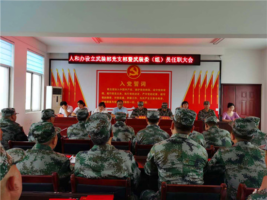 本次大會(huì)確定在人和辦武裝部建立1個(gè)黨支部,人和辦武裝部長(zhǎng)王超任黨支部書(shū)記,在轄區(qū)9個(gè)社區(qū),每個(gè)社區(qū)建立1個(gè)3人黨小組,黨小組成員包括在該社區(qū)設(shè)置的1名兼職武裝委員和在該社區(qū)基本單元網(wǎng)格設(shè)置的2名兼職武裝組員。每個(gè)黨小組編入人和街道武裝部黨支部,并報(bào)區(qū)人武部備案,制定任命證書(shū)。