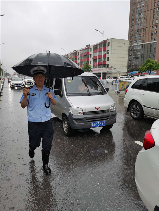 大雨滂沱,交通擁堵。7月22日,針對市區(qū)降大雨且部分路段出現(xiàn)嚴(yán)重積水的情況,交警及時啟動惡劣天氣應(yīng)急預(yù)案,迅速投入到工作中。
