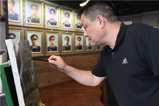 走進(jìn)毗鄰周口市區(qū)的張一油畫(huà)工作室,一股墨香迎面撲來(lái)。讓人眼前一亮的是畫(huà)室四周掛滿的人物肖像,特別是南面墻上的一組開(kāi)國(guó)將帥肖像畫(huà)尤為引人注目。將軍們威武雄健,或凌厲或威嚴(yán)的眼神讓人回想起他們那個(gè)戎馬倥傯、戰(zhàn)火紛飛的年代。