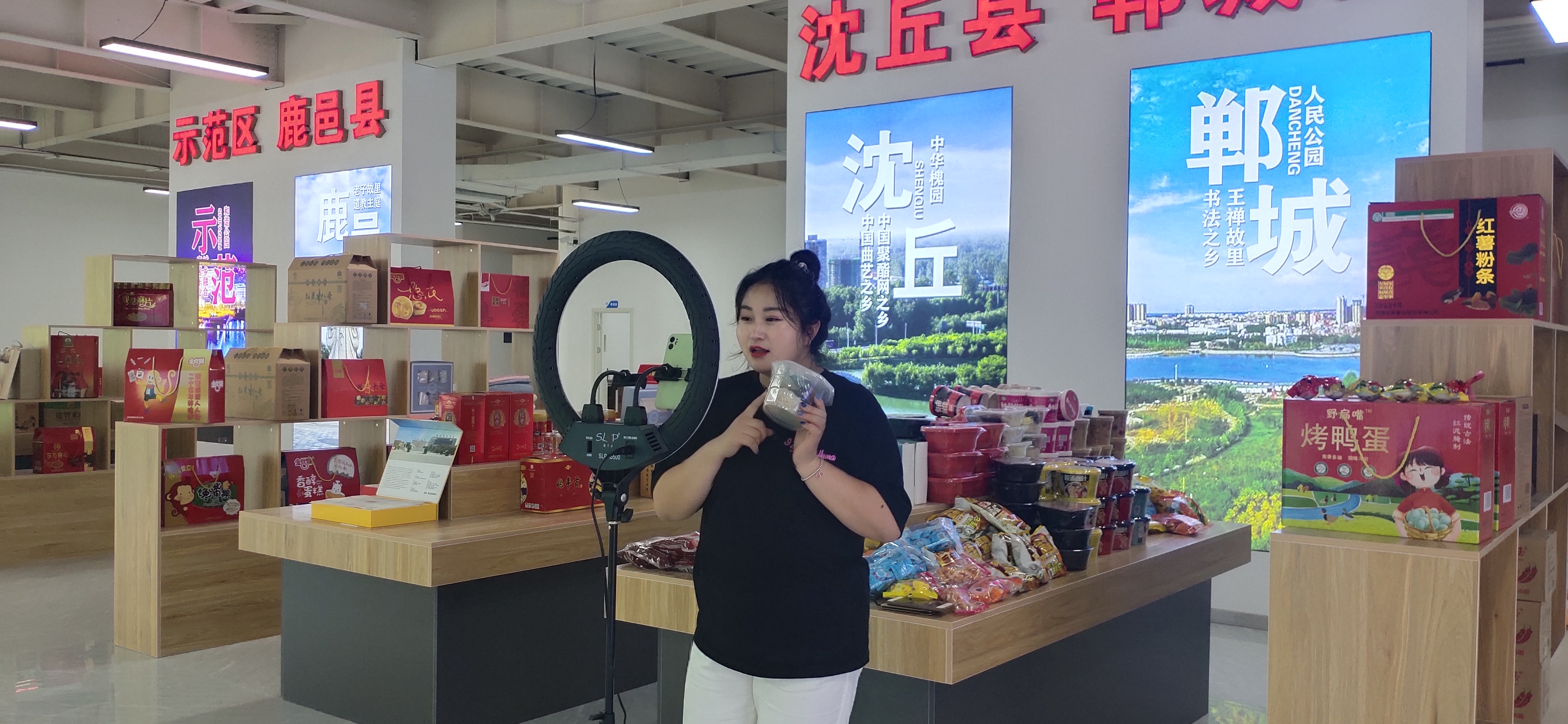 盛夏時節(jié),記者走進周口市直播電商產(chǎn)業(yè)基地,只見偌大的中心展廳內(nèi),一個個“網(wǎng)紅”正在現(xiàn)場直播帶貨,宣傳推介周口特色產(chǎn)品。
