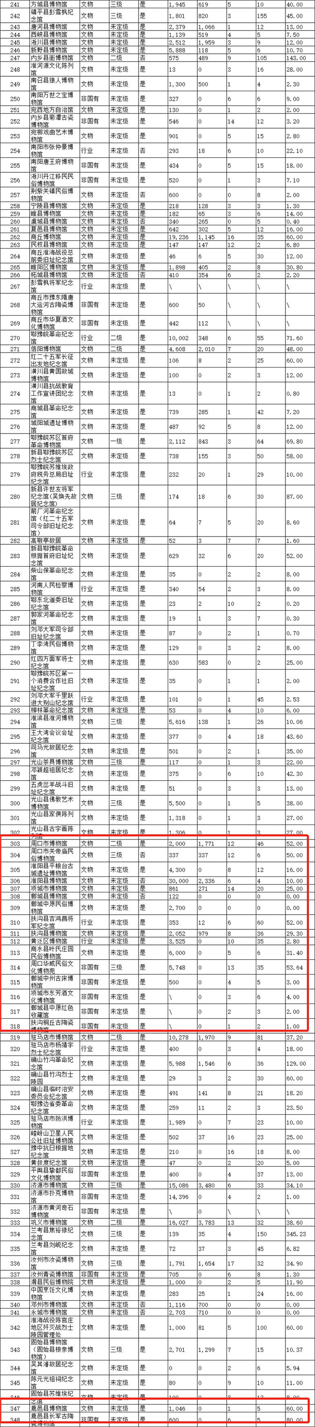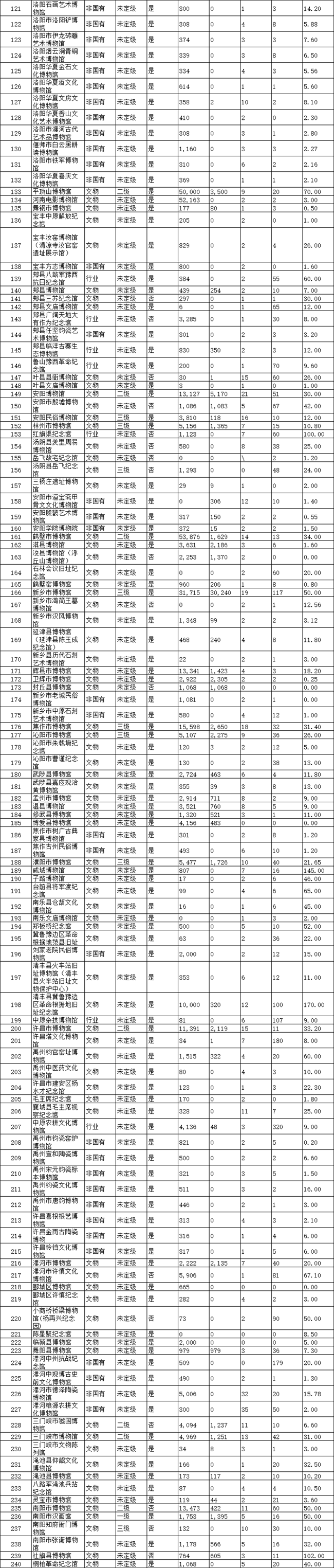 《名錄》公開了2019年河南省各家博物館的多個方面的數(shù)據(jù),包括藏品數(shù)量、珍貴文物數(shù)量、陳列展覽、教育活動、參觀人數(shù)等。根據(jù)《名錄》,截至2019年年底,周口市(縣、區(qū))有二級博物館1家,三級博物館2家,未定級博物館15家,收藏文物60144件套,珍貴文物5706件套。