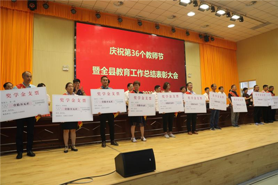 與會領(lǐng)導(dǎo)還分別為優(yōu)秀教師、優(yōu)秀教育工作者、師德標(biāo)兵代表、最美教師、教育全面工作先進(jìn)單位、尊師重教先進(jìn)鄉(xiāng)鎮(zhèn)、尊師重教先進(jìn)局委和2020年考入清華、北大學(xué)生及家長進(jìn)行了頒獎。