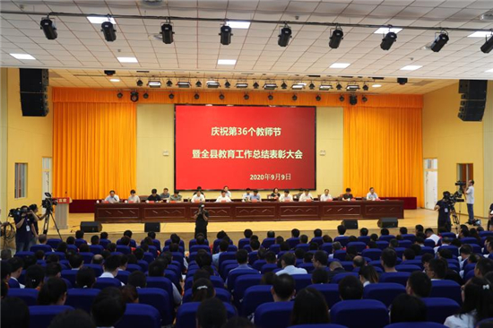 全縣各鄉(xiāng)鎮(zhèn)黨委書記和主抓教育副鄉(xiāng)鎮(zhèn)長,縣直各單位主要負(fù)責(zé)人,教體局班子成員及各股室負(fù)責(zé)人,各鄉(xiāng)鎮(zhèn)中心校校長、局直學(xué)校校長,中小學(xué)校長代表,優(yōu)秀教師代表、學(xué)生代表等1100人共同慶祝第36個教師節(jié)暨全縣教育工作總結(jié)表彰大會。