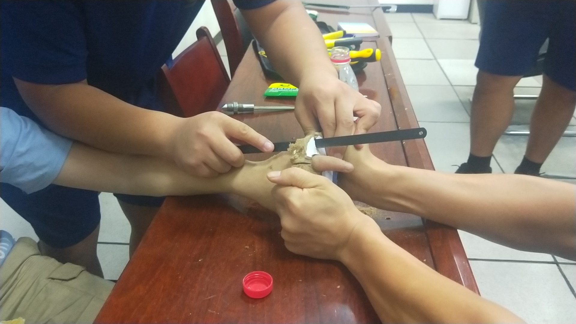 看到救援人員,小男孩十分害羞,有點(diǎn)不好意思?!拔铱醋雷由嫌袀€(gè)孔,就是想看看手指能不能伸進(jìn)去,結(jié)果就拔不出來了。”救援人員經(jīng)觀察發(fā)現(xiàn),小男孩左手無名指被卡在課桌木板上的小孔里,木板已被裁下,木板材質(zhì)為鋸末壓縮板,此時(shí)小男孩手指被卡部位周圍已發(fā)生腫脹必須馬上處理。救援人員利用鋼鋸將木板一點(diǎn)點(diǎn)鋸開,然后又用鉗子用力將木板夾開,經(jīng)過3分鐘救援,成功將禁錮小男孩手指的木板摘除。看到木板被從手上取下,男孩長(zhǎng)長(zhǎng)地舒了口氣。