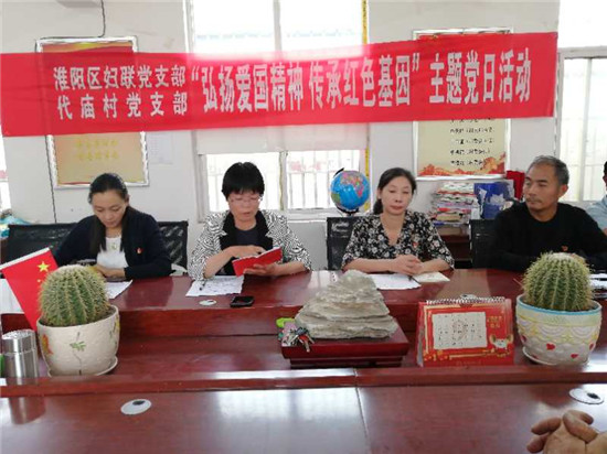 為進(jìn)一步教育引導(dǎo)黨員、干部弘揚愛國精神,傳承紅色基因,夯實基層黨支部戰(zhàn)斗堡壘和黨員先鋒模范作用。9月22日(農(nóng)歷初六),淮陽區(qū)婦聯(lián)黨支部在幫扶村大連鄉(xiāng)代廟行政村,與該村黨支部共同開展“弘揚愛國精神 傳承紅色基因”9月份主題黨日活動。區(qū)婦聯(lián)全體黨員、代廟村黨支部在家黨員參加了活動。
