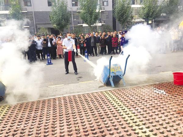 9月28日,一場熱鬧有序的消防安全演練在開發(fā)區(qū)太昊路辦事處許寨社區(qū)舉行。消防救援隊員、公安民警、辦事處職工、社區(qū)居民、物業(yè)服務人員等500多人現(xiàn)場參觀、參與消防演練。圖為消防演練現(xiàn)場。記者 王泉林 攝 ③2