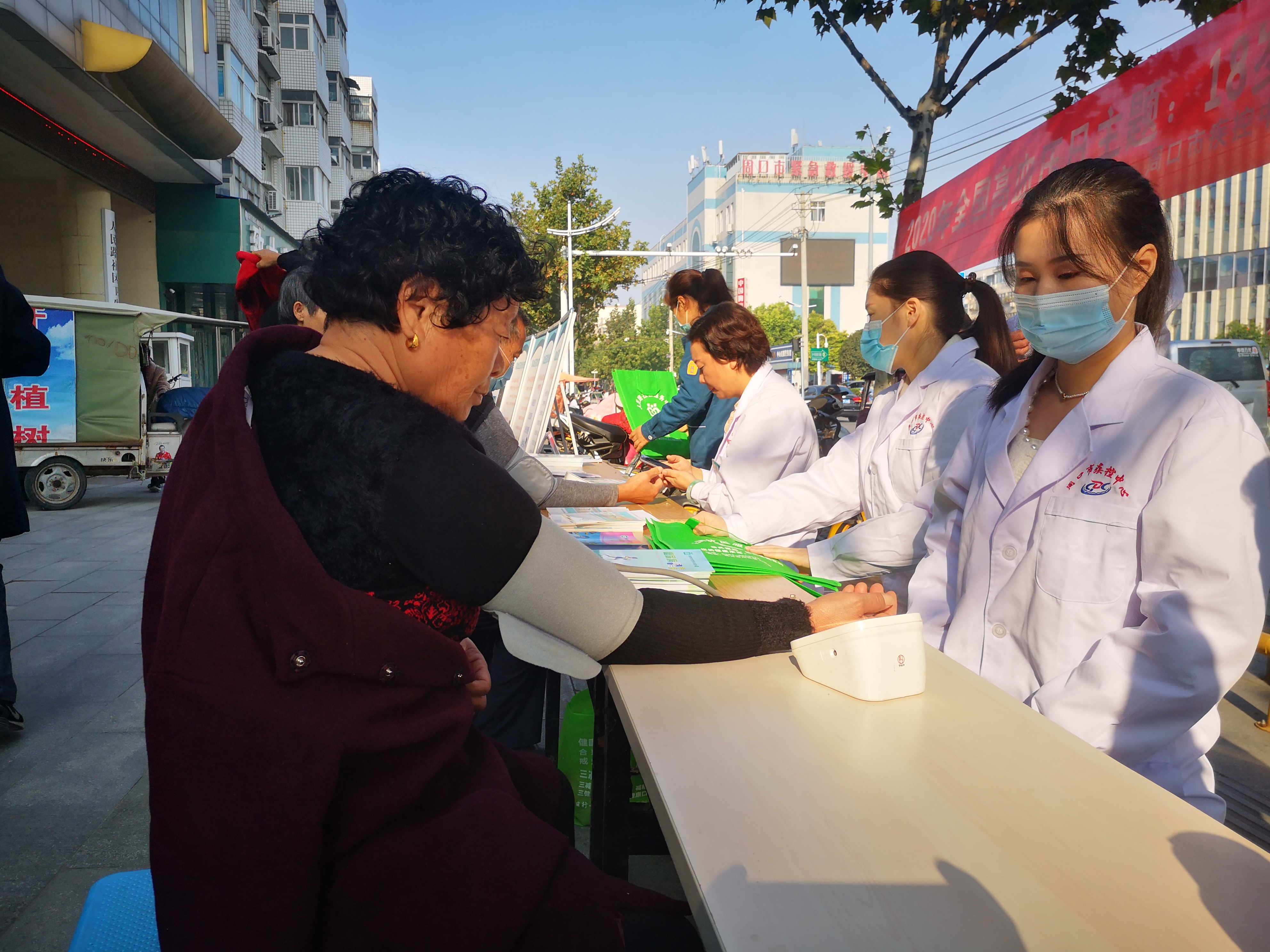 10月8日是第23個(gè)全國高血壓日,周口巿疾控中心積極開展防治高血壓科普知識宣傳活動,在人民路東段設(shè)立咨詢義診臺,為前來咨詢的群眾測量血壓、血糖,向群眾宣傳“合理膳食,適量運(yùn)動”“健康心率、健康血壓”等知識。圖為市疾控中心工作人員為過往群眾測量血壓。