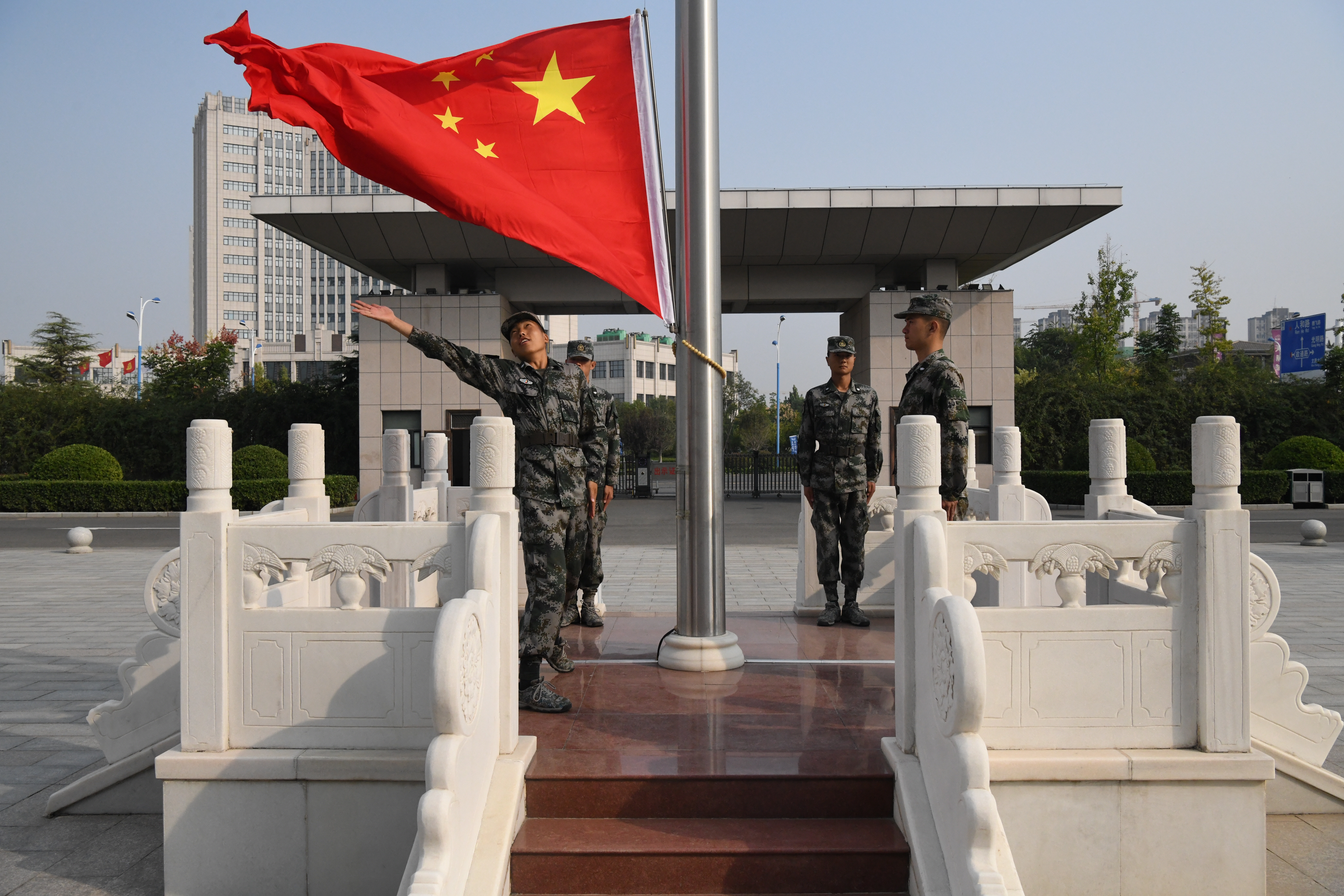 國旗飄揚激發(fā)革命斗志,軍歌嘹亮詮釋忠誠誓言。10月1日上午,周口軍分區(qū)舉行升國旗儀式慶祝中華人民共和國71周年華誕。來自周口軍分區(qū)機關(guān)、市民兵武器裝備倉庫的全體官兵職工、文職人員80人參加了儀式。周口軍分區(qū)司令員湯維政主持儀式。當日8時許,全體官兵在軍分區(qū)機關(guān)營區(qū)升旗臺前整齊列隊,精神飽滿,士氣昂揚,帶著對祖國最熱忱的祝福,帶著對生活最美好的憧憬,等待著最莊嚴時刻的到來。隨著一聲“迎國旗”的洪亮口令,英姿颯爽的4名護旗手邁著鏗鏘有力的步伐護送國旗走向升旗臺。伴隨著雄壯的《義勇軍進行曲》,升旗手抬手振臂,鮮艷的五星紅旗迎風展開,在官兵們的注目下冉冉升起。