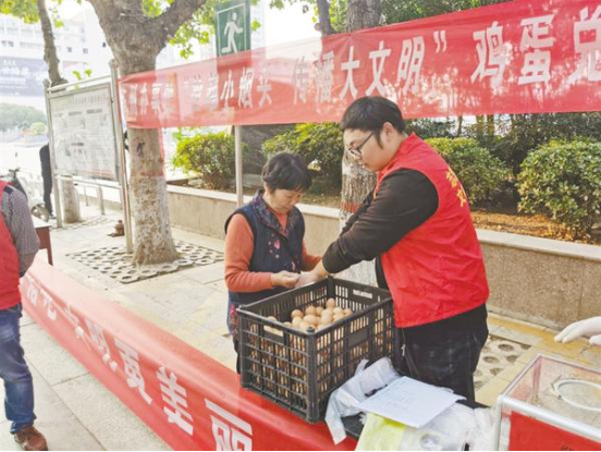 原來這是川匯區(qū)陳州辦事處在五一廣場舉辦的“撿起小煙頭 傳播大文明”煙頭換雞蛋活動(dòng)。該辦事處工作人員表示:“五一廣場周邊人流量大,亂丟煙頭現(xiàn)象嚴(yán)重,治理困難,我們很苦惱,于是想出了這個(gè)煙頭換雞蛋的妙招,居民可以拿20個(gè)煙頭換一個(gè)雞蛋。活動(dòng)的目的就是發(fā)動(dòng)一批人撿拾煙頭,影響帶動(dòng)周邊的人,讓更多的人參與撿煙頭,讓吸煙的人不好意思丟煙頭,增強(qiáng)市民的環(huán)保意識(shí)和文明意識(shí)?!?/p>