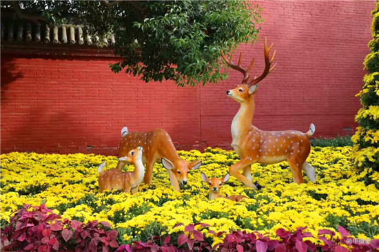 會上,相關負責人對當前菊展的布展情況進行了通報。截至10月17日,耗時近半個月的第三屆重陽菊展布展工作已經(jīng)結束,布展面積約24000平方米,總計約40萬盆的金菊已全部布展到位。同時,設置200個景觀造型,各類觀賞菊150余種,大中小各類精品菊花3000余盆,等待游客的檢閱。