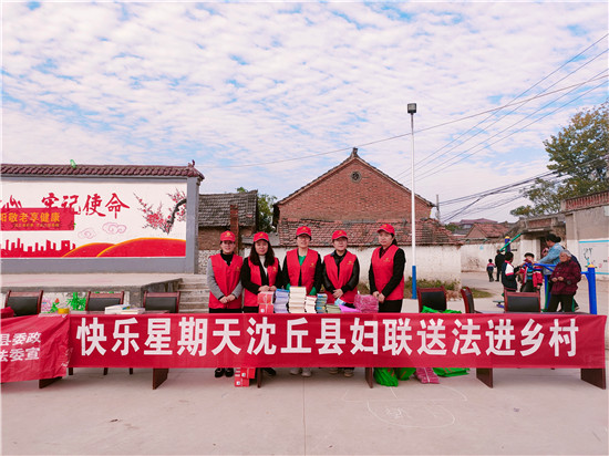 為助力鄉(xiāng)村振興,不斷提高廣大農(nóng)村留守婦女的法律意識(shí),切實(shí)解決她們生產(chǎn)生活中存在的法律難題,10月25日上午,沈丘縣婦聯(lián)借“快樂星期天公益行”主題活動(dòng)之機(jī),走進(jìn)北城辦事處蘇樓村居委,對《民法典》《婦女權(quán)益保障法》《反家庭暴力法》《未成年人保護(hù)法》等有關(guān)法律法規(guī)進(jìn)行宣傳,把法律服務(wù)送到群眾家門口。