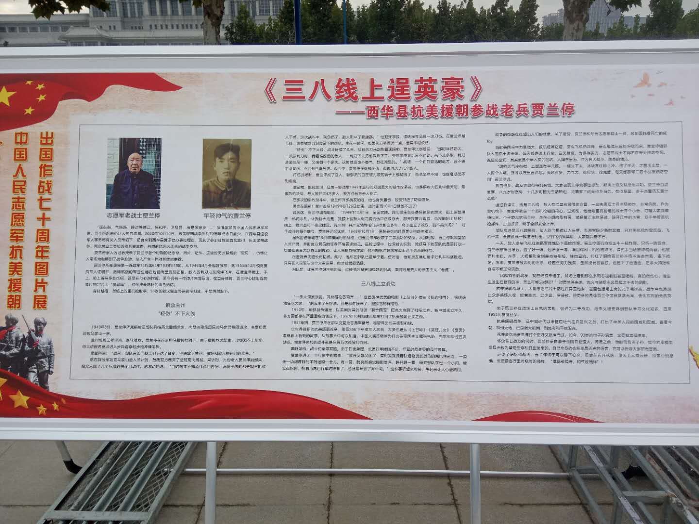 在《三八線上逞英豪,西華縣抗美援朝參戰(zhàn)老兵賈蘭?!酚⑿凼论E展板前,民兵們仔細(xì)地看了一遍又一遍,深受感動(dòng)?!盀榱藝液兔褡澹瑸榱撕推脚c正義,這位西華老戰(zhàn)士奔赴異域疆場,與強(qiáng)敵殊死較量,事跡可歌可泣,感人至深。我們要以這位本縣老鄉(xiāng)為榜樣,守初心、擔(dān)使命,繼承和發(fā)揚(yáng)老一輩的革命精神、光榮傳統(tǒng)和優(yōu)良作風(fēng),進(jìn)一步弘揚(yáng)偉大的愛國主義精神,讓紅色基因代代相傳?!眮碜钥h公路局的基干民兵樊麗動(dòng)情地說。