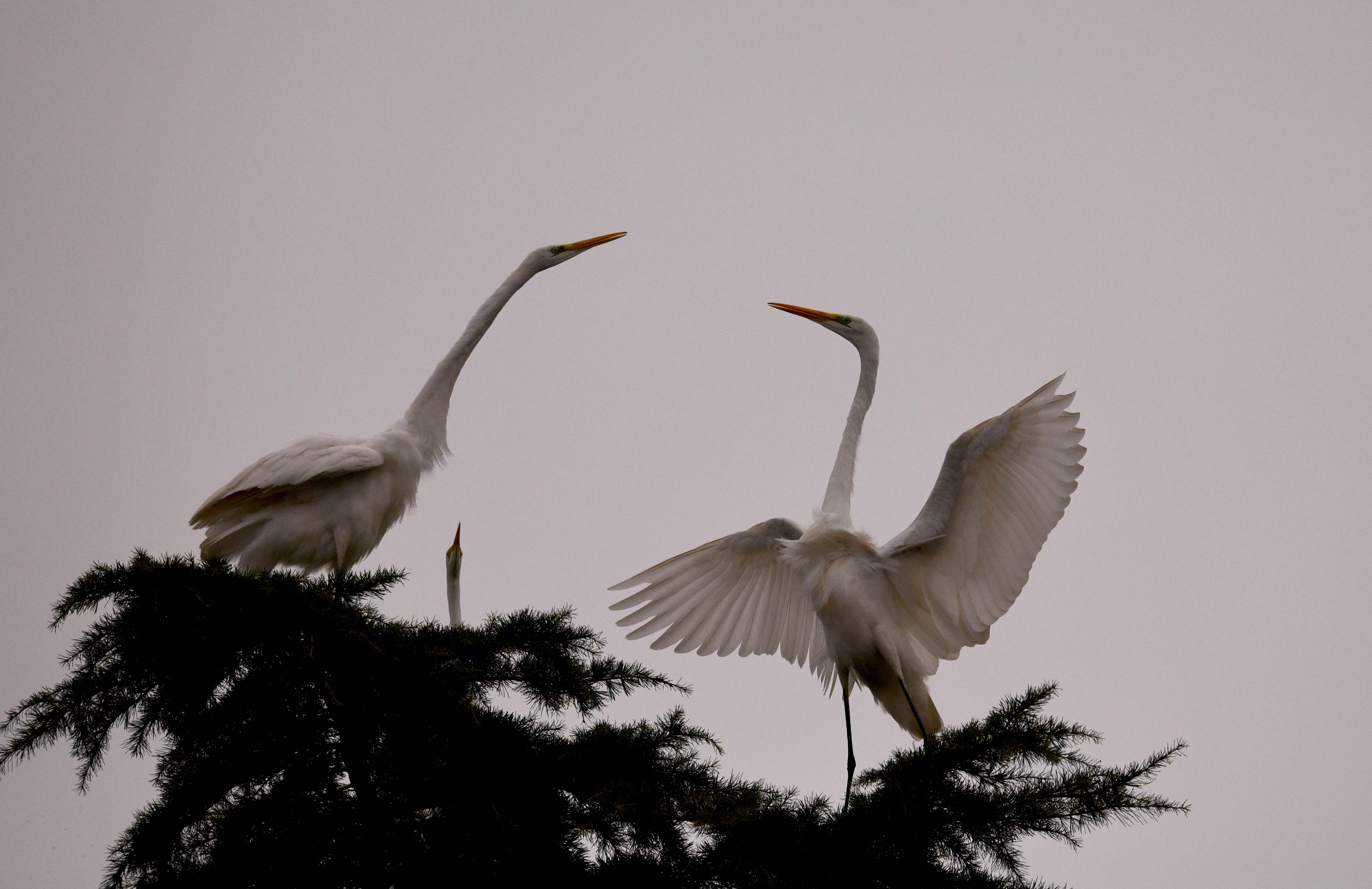 近日,市區(qū)漢陽路沙潁河大閘的中心島林間,飛來近百只白鷺。這里幽靜舒適的環(huán)境和河里豐富的魚蝦,滿足它們棲息和生活。它們面對行人,不驚不詫,時而盤旋嬉戲,時而捉魚果腹。人鳥和諧相處,構(gòu)成美麗的生態(tài)風情。②9