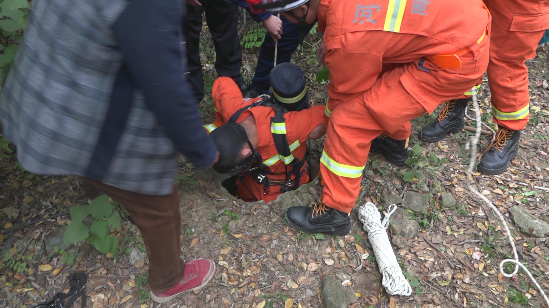 救援人員到達(dá)現(xiàn)場后發(fā)現(xiàn),一名蒼蒼的老人掉落電纜井內(nèi),井雖然不深,但是井下面積很大而且沒有著力點(diǎn),給救援帶來一定的難度。此時(shí),被困老人仍有意識(shí),但無法行動(dòng)。救援人員隨即背上空氣呼吸器,綁上安全繩下井營救,其余人員配合營救。下井救援時(shí),救援人員攜帶綁有安全繩的消防安全帶下井試圖給老人戴上,可由于被困人員年齡較大,無法積極配合,救援人員通過不斷嘗試才將消防安全帶扣到被困人員腋下,井上配合人員抓緊安全繩上拉,經(jīng)過十分鐘救援作業(yè),老人被成功救出,等候在一旁的急救人員將其送往醫(yī)院救治。
