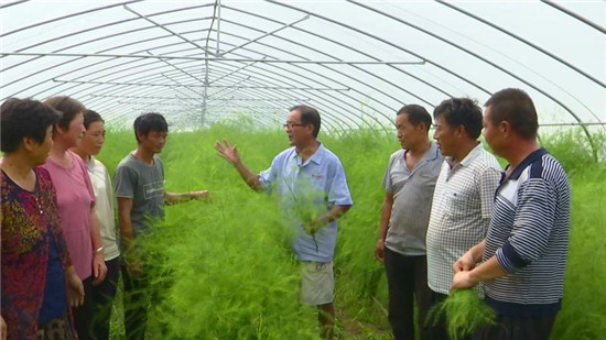 蘆筍種植是一個勞動密集型產(chǎn)業(yè),整棚、育苗、移栽、除草、施肥、打藥、采摘、撿筍、分割、裝箱等工序都需要大量的勞動力,每天都有60多位周邊村莊的村民來王永振的合作社務工,每人每天60元的工資,打工顧家“兩不誤”。“我歲數(shù)大了,也不方便外出打工,在蘆筍種植基地務工,一個月工資2000元,既增加了收入以補貼家用,又能照顧家庭?!苯衲?0多歲的劉莊村貧困戶孫宜勤高興地說。