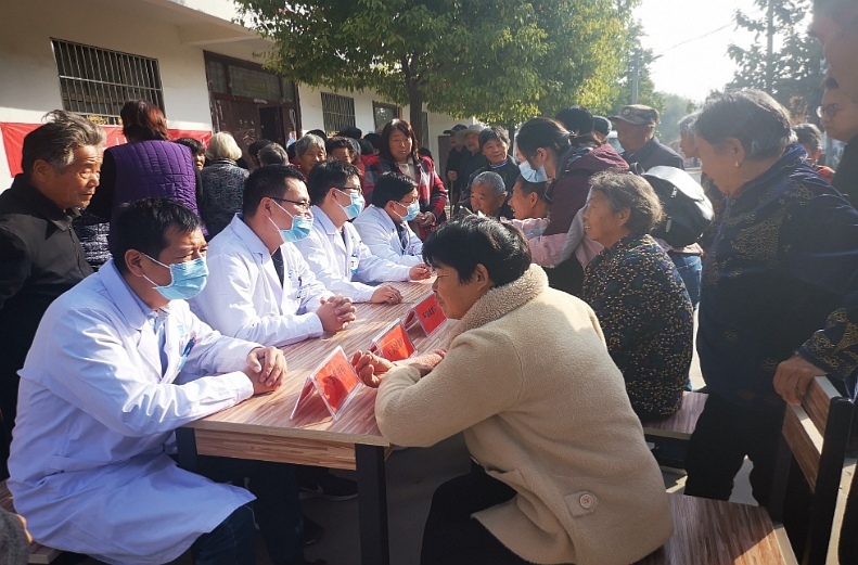 近日,項(xiàng)城市僑聯(lián)聯(lián)系醫(yī)療專(zhuān)家組專(zhuān)家開(kāi)展送健康下鄉(xiāng)活動(dòng),到項(xiàng)城市新橋鎮(zhèn)張小莊行政村對(duì)村民義診。醫(yī)療專(zhuān)家組由鄭州大學(xué)附屬一院、附屬五院和項(xiàng)城市第一人民醫(yī)院專(zhuān)家組成,主要對(duì)高血壓、心臟病、糖尿病和各種疼痛病進(jìn)行現(xiàn)場(chǎng)義務(wù)診療。
