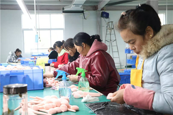 2014年,孫小懶家被列入建檔立卡貧困戶。孫小懶一人帶著三個孩子,不能出遠門務(wù)工,只能守著二畝薄田種些莊稼度日。今年初冬,家門口的河南雅彩美妝用具有限公司開工,孫小懶是第一批主動報名的員工。經(jīng)過崗前培訓(xùn),她正式上崗,主要負責(zé)化妝刷的套管工作,一個月能掙3000多元?!坝嫾べY,干得多就掙得多。等技術(shù)更加熟練后,工資還會上漲,以后的日子會越來越紅火?!睂O小懶樂呵呵地說。