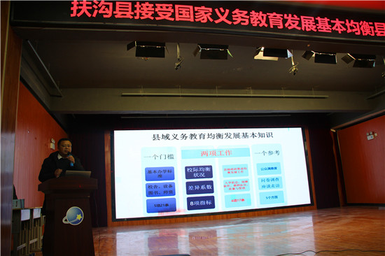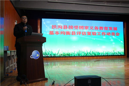今年是河南省義務(wù)教育發(fā)展基本均衡縣評(píng)估的收官之年,扶溝縣將接受國(guó)家的抽查復(fù)驗(yàn)。為進(jìn)一步做好迎接國(guó)家義務(wù)教育發(fā)展基本均衡縣評(píng)估復(fù)驗(yàn)工作,11月25日上午,扶溝縣教體局召開(kāi)了接受國(guó)家義務(wù)教育發(fā)展基本均衡縣評(píng)估復(fù)驗(yàn)工作動(dòng)員會(huì)。教體局全體領(lǐng)導(dǎo)班子、股室負(fù)責(zé)人、包鄉(xiāng)人員,各鄉(xiāng)鎮(zhèn)(街道)中心校校長(zhǎng)、普教專干、初中校長(zhǎng)及迎驗(yàn)學(xué)校校長(zhǎng)300余人參加會(huì)議。