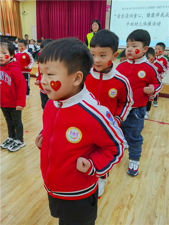 在熱情洋溢的音樂(lè)中,中班的運(yùn)動(dòng)健兒們,雄赳赳氣昂昂地入場(chǎng)了。瞧!他們個(gè)個(gè)精神抖擻,活力四射,整齊的步伐,響亮的口號(hào),無(wú)不體現(xiàn)蓮幼兒童的活潑、自信?!笆澜缯婷篮谩钡捏w操音樂(lè)響起,幼兒快樂(lè)地舞動(dòng)身體,時(shí)而裝作勇敢的海鷗,時(shí)而扮作講衛(wèi)生的小花貓,時(shí)而又成了互幫互助的企鵝。活靈活現(xiàn)的動(dòng)物模仿操,迎來(lái)現(xiàn)場(chǎng)觀眾的熱烈掌聲。隨著一聲響亮的“嘿、哈”,幼兒扎馬步、出拳,一氣呵成。小小的身體,展現(xiàn)大大的能量。掌握中國(guó)功夫,鍛煉強(qiáng)健體魄,我們都是功夫?qū)殞殻∏?!大班幼兒在?dòng)感的音樂(lè)和老師的指揮中精神抖擻、踏著整齊的步伐入場(chǎng)了,他們靈活、有序地變換著各種隊(duì)形,像一個(gè)個(gè)快樂(lè)的小精靈。在歡快的音樂(lè)中,幼兒都十分投入,和著音樂(lè)的節(jié)奏,動(dòng)作協(xié)調(diào)、整齊有力,時(shí)而還發(fā)出“哼哈”的口令聲呢!他們開(kāi)心地跳著、笑著,跳出了快樂(lè)、跳出了自信、跳出了他們對(duì)運(yùn)動(dòng)的喜愛(ài),對(duì)健康的追求。