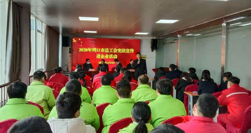 12月4日上午,市總工會到億星集團為工會干部和職工進行普法宣講,組織了職工通過豫工惠進行憲法、民法典知識有獎答題,市總工會法律顧問、律師志愿者講解了《民法典》知識,發(fā)放了工會“一法一條例”(工會法、河南省工會條例)、豫工惠使用手冊指南以及有關法律法規(guī)資料。市總工會黨組成員、副主席郭建軍組織參加了學習宣傳活動。