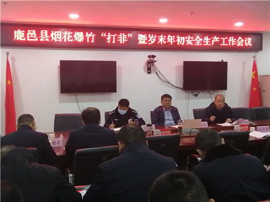 12月10日上午,在國家和省安全生產(chǎn)工作視頻會(huì)議結(jié)束后,鹿邑縣委常委、常務(wù)副縣長陸志杰,副縣長、縣公安局長任金瑞立即組織召開專題會(huì)議,對全縣煙花爆竹“打非”和歲末年初安全生產(chǎn)重點(diǎn)工作進(jìn)行安排部署。