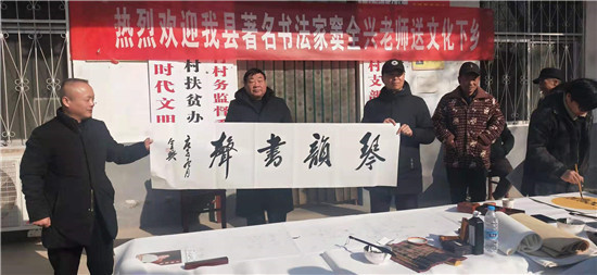 為弘揚(yáng)傳統(tǒng)文化,傳播正能量,助力農(nóng)村文化建設(shè),12月16日,沈丘縣自然資源局駐村工作隊(duì)邀請(qǐng)沈丘縣書(shū)法家竇全興老師到石槽集鄉(xiāng)于營(yíng)行政村開(kāi)展送文化下鄉(xiāng)活動(dòng),為廣大群眾送去“文化大餐”。