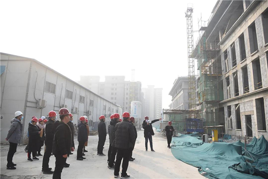 當(dāng)日上午,受院長(zhǎng)于健委托,院領(lǐng)導(dǎo)張廣海、葉達(dá)林、王文鋒、王成坤帶領(lǐng)醫(yī)政、護(hù)理、控感等相關(guān)職能科室負(fù)責(zé)人,一行20余人到建設(shè)工地現(xiàn)場(chǎng)察看。施工方技術(shù)人員詳細(xì)介紹了門診樓、病房樓等各樓層的功能定位、科室布局、水暖線路等,雙方就一些細(xì)節(jié)問題進(jìn)行深入交流。