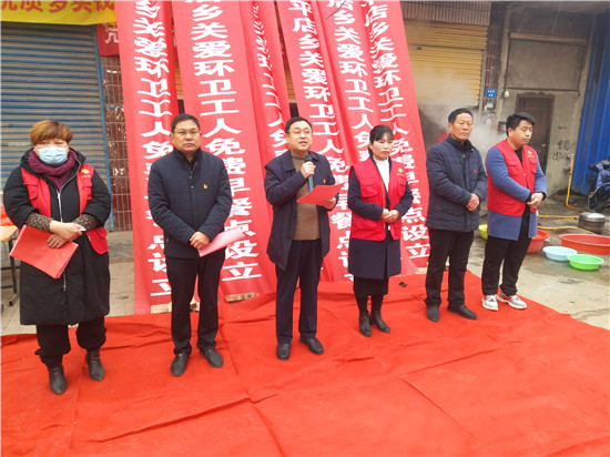 “你們是城市的美容師,每天迎來清晨的第一縷陽光,送走傍晚的最后一片晚霞,為了平店鄉(xiāng)的市場街道衛(wèi)生清潔作出了貢獻。從今天起商水義工協(xié)會將為你們免費提供愛心早餐,這不僅僅是為了給你們送去關(guān)心與體貼,更重要的是讓廣大群眾了解到你們的辛勞、珍惜你們的勞動成果……”劉玉英首先講了活動的初衷和目的。