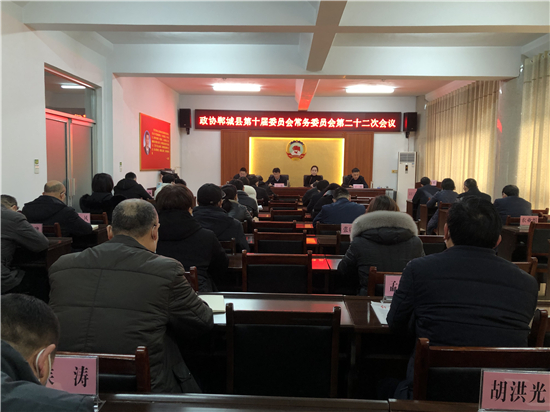 1月28日上午,政協(xié)鄲城縣第十屆委員會(huì)常務(wù)委員會(huì)第二十二次會(huì)議召開,縣政協(xié)主席王偉,副主席李素梅、王巖、于健出席會(huì)議。