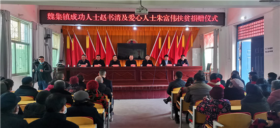 1月29日,天氣乍暖還寒,魏集鎮(zhèn)政府人頭攢動(dòng),喜氣洋洋,一片熱鬧的景象。內(nèi)蒙古希拉穆仁旅游置業(yè)開(kāi)發(fā)有限公司董事長(zhǎng)、內(nèi)蒙古楊子照明鋼桿制造有限責(zé)任公司董事長(zhǎng)、內(nèi)蒙古周口商會(huì)會(huì)長(zhǎng)趙書(shū)清和愛(ài)心人士朱富偉一行,帶著整整兩卡車米、面、油共計(jì)八萬(wàn)元生活物資,回到家鄉(xiāng)魏集鎮(zhèn)開(kāi)展扶貧濟(jì)困活動(dòng),在嚴(yán)寒的冬日給魏集鎮(zhèn)困難群眾帶來(lái)了溫暖和祝福??h政協(xié)主席孫培忠,縣委常委、宣傳部長(zhǎng)李本磊出席活動(dòng)。魏集鎮(zhèn)黨委書(shū)記衛(wèi)春忙,鎮(zhèn)長(zhǎng)劉艷光參加活動(dòng)。